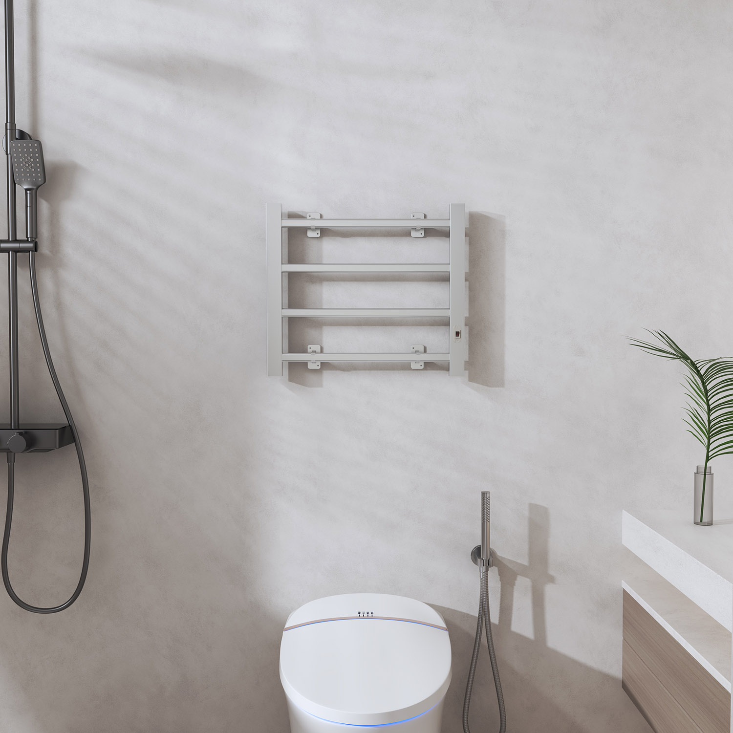 4桿電熱毛巾架 5 bar heated towel rail 材質(zhì)Material:Space aluminum and PP plastics 太空鋁+PP塑料 功率Power:220V/60W 表面Surface:Silver Oxide 氧化銀 尺寸Size:460*60*580mm 包裝Ctn size:480*60*610mm