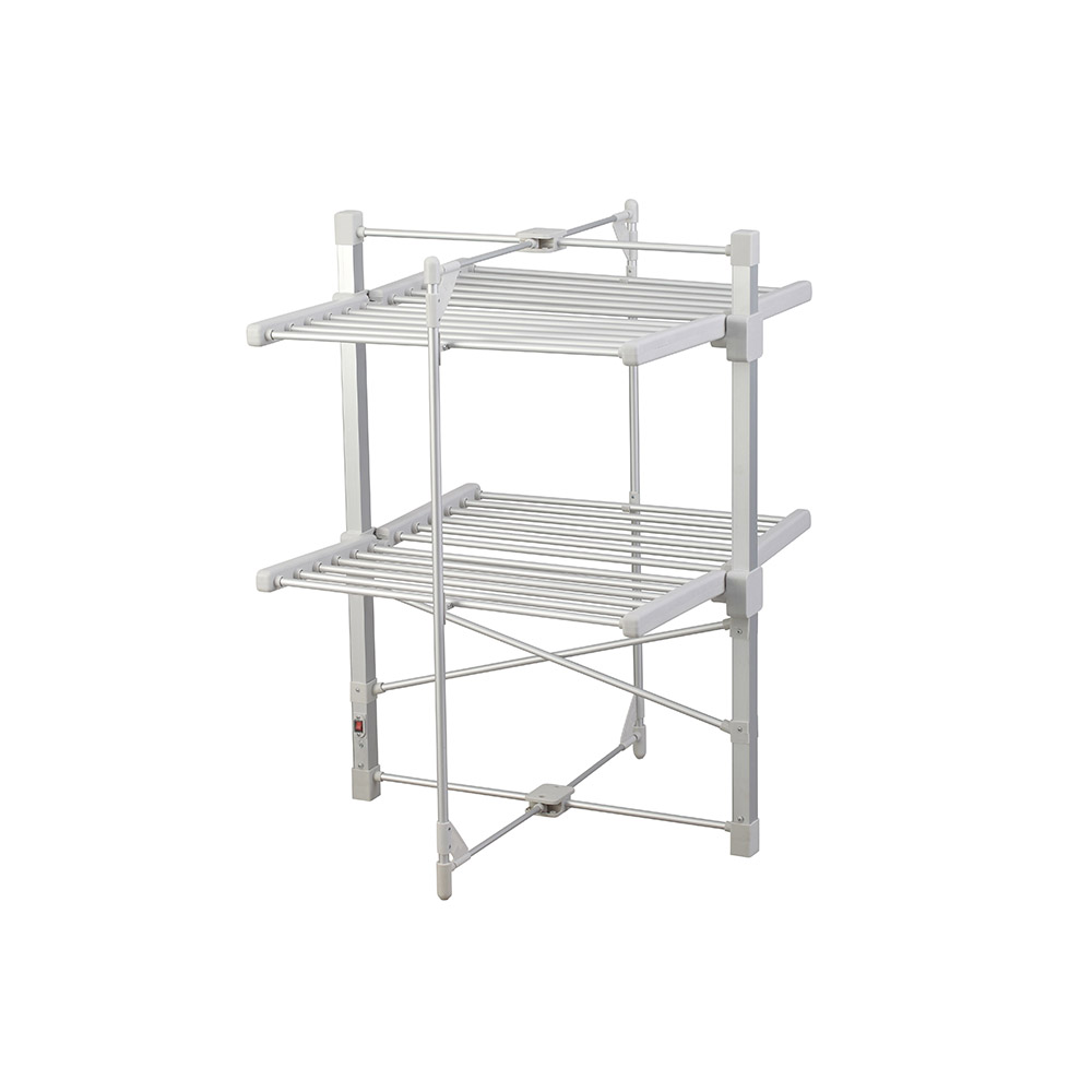雙層折疊電熱干衣架 Double folding electric dryer 材質Material:Space aluminum and PP plastics 太空鋁+PP塑料 功率Power:220V/200W 表面Surface:Silver Oxide 氧化銀 尺寸Size:780*720*990mm 包裝Ctn size:750*120*1020mm
