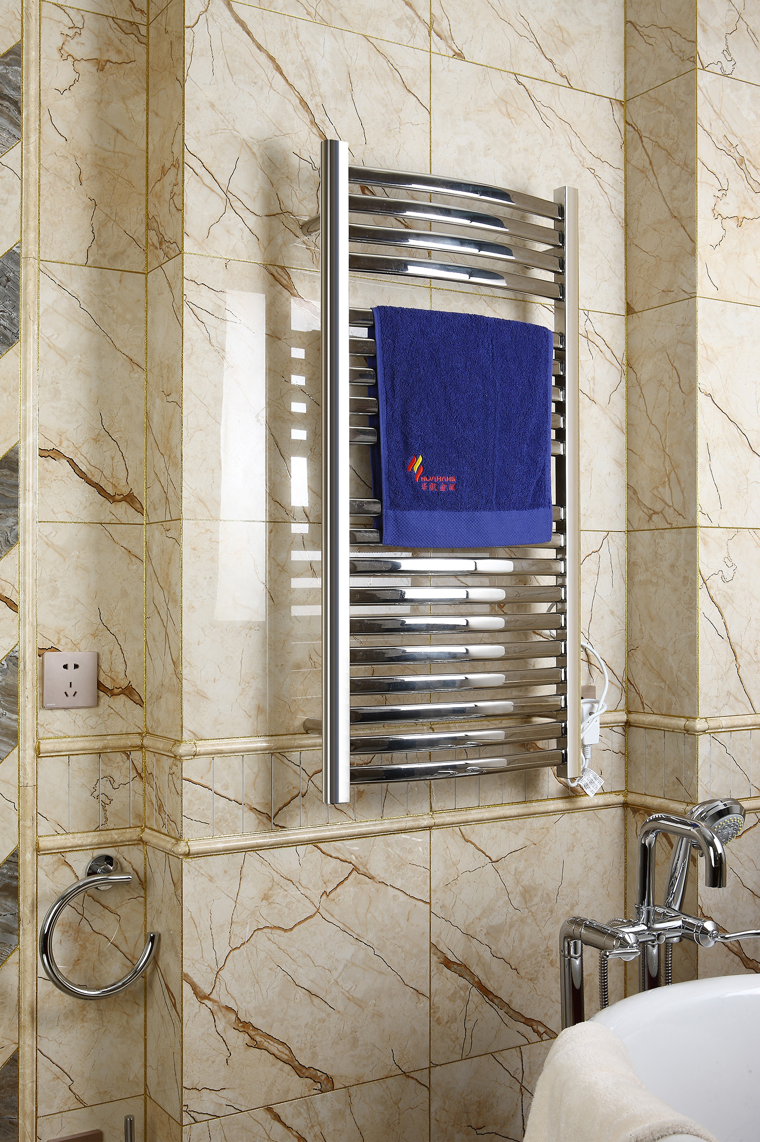 19桿電熱毛巾架 19 bar heated towel rail 材質Material:SS201/SS304 功率Power:220V/140W 表面Surface:Mirror Polished 鏡面拋光 尺寸Size:500*110*1200mm 包裝Ctn size:520*60*1230mm
